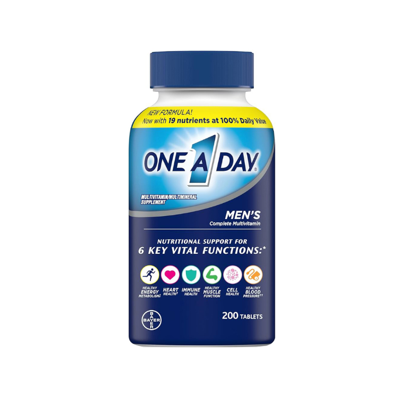 مولتیویتامین مردانه وان ا دی بایر Bayer One A Day Men’s Multivitamin Minerals، یک مولتیویتامین کامل و معتبر مخصوص آقایان است که توسط برند مطرح Bayer تولید شده، این مکمل برای پشتیبانی از سلامت عمومی مردان، انرژی روزانه، سلامت عضلات، سیستم ایمنی و سلامت قلب طراحی شده است، ترکیب دقیق و علمی این مولتیویتامین، تمام نیازهای ویتامینی و معدنی بدن آقایان را تنها با یک قرص در روز تأمین میکند.