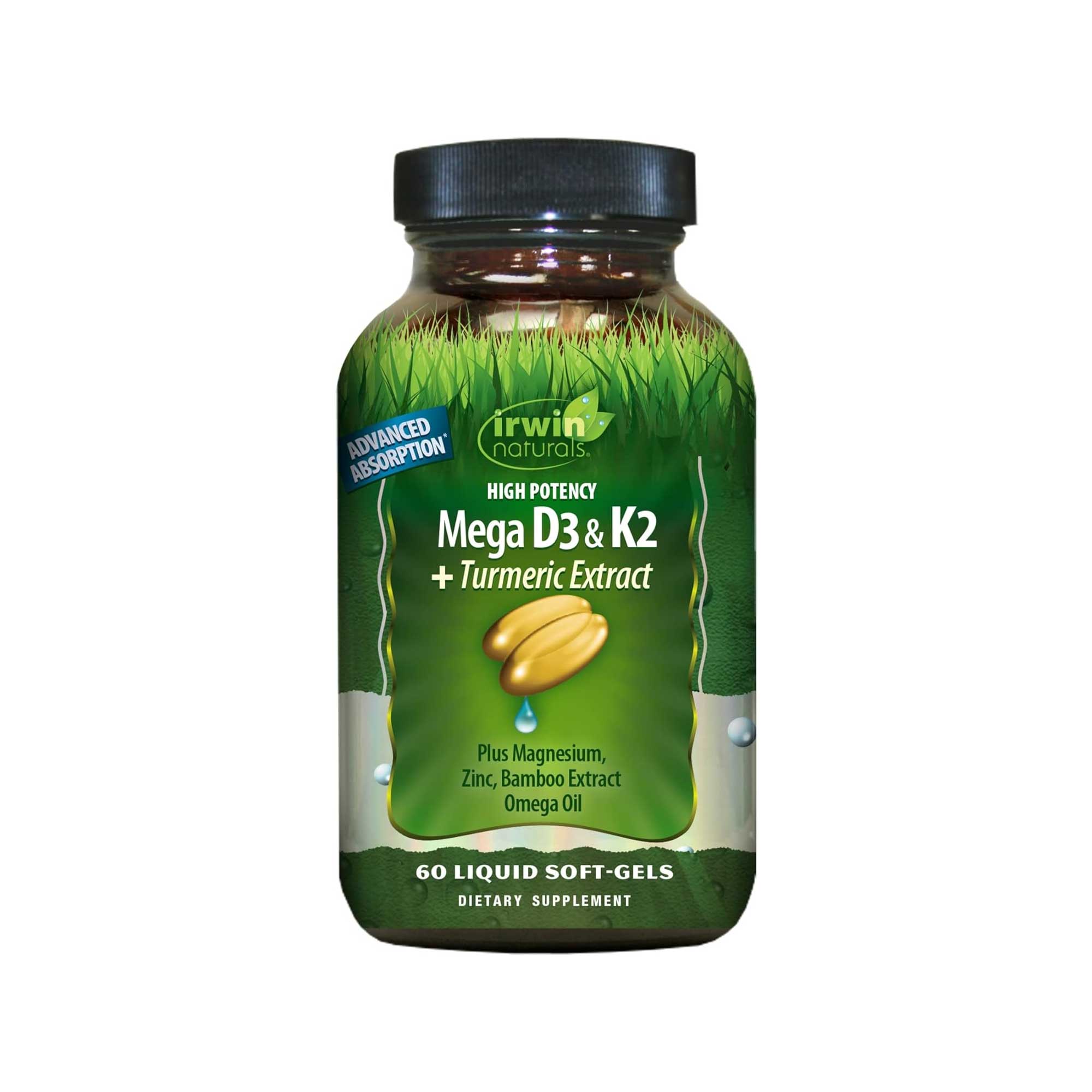 ویتامین D3 و K2 و عصاره زردچوبه اروین نچرالز Irwin Naturals High Potency Mega D3 & K2 + Turmeric Extract حاوی منیزیم، روی، عیاره بامبو و روغن امگا 3 می باشد. ویتامینهای D3 و K2 ویتامینهای محلول در چربی هستند که نقش مهمی در حفظ سلامت کلی از جمله سلامت استخوان دارند.
