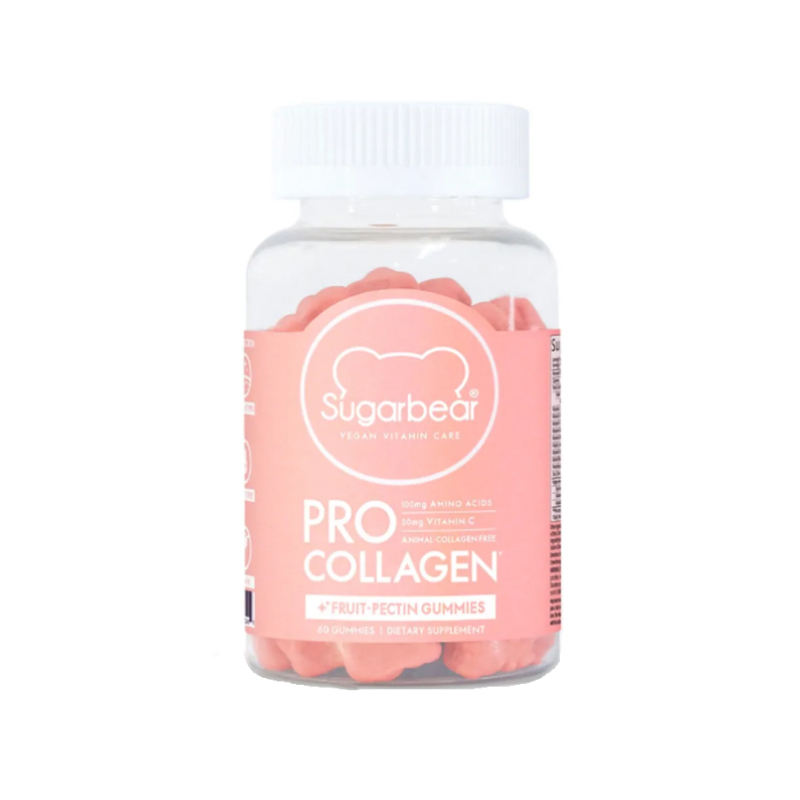 پاستیل پرو کلاژن شوگربیر SugarbearPro Collagen Gummies، حاوی انواع ویتامین‌ها می‌باشد تا پوست شما را جهت کلاژن‌سازی تحریک کند، کلاژن شوگربیر علاوه بر پوست برای ناخن‌ها موها، استخوان‌ها و مفاصل نیز مناسب است، این محصول عاری از کلاژن حیوانی بوده و حاوی ویتامین‌های D، C، B12، و بیوتین و… می‌باشد تا به کلاژن‌سازی طبیعی پوست کمک کند.