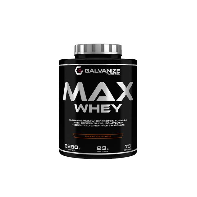 مکمل پروتئین وی مکس شرکت مجارستانی گالوانایز Galvanize Nutrition Whey Max یک مکمل پروتئینی باکیفیت بالا است که ترکیبی از پروتئین وی کنسانتره و ایزوله را در خود جای داده است. این ترکیب باعث میشود که پروتئین به سرعت جذب شده و مواد مغذی مورد نیاز عضلات را تأمین کند. این محصول با دارا بودن اسیدهای آمینه شاخهای (BCAA) و گلوتامین، به کاهش تجزیه عضلانی و افزایش ریکاوری بعد از تمرین کمک میکند.